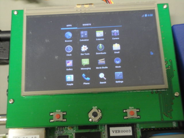 これで画面が出るようになりました。タッチパネルも反応するのですが、座標のずれが大きくてうまく操作できません。おそらくキャリブレーションのしくみが変わったのでしょう。(2011/12/06 追記。タッチパネルが使えるようになりました。 KZM-A9-DualボードのAndroid4.0でタッチパネルが使えるようにする)