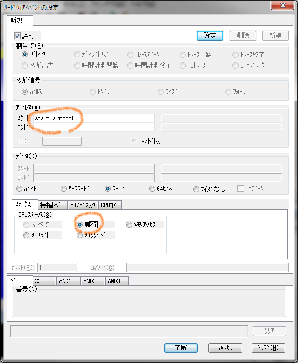 PARTNER-JetでDRAMで動く一番最初の関数でブレークさせるには